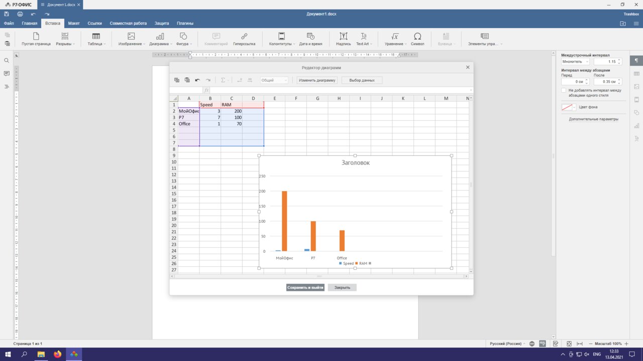 Диаграммы в «P7-Офис»