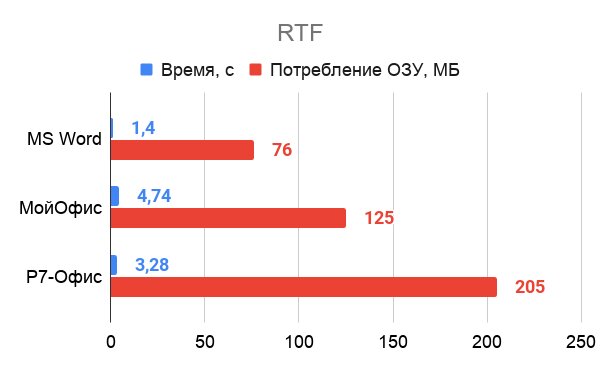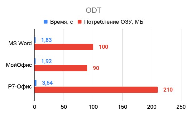 Быстрее всех запускаются и меньше всего ресурсов потребляют продукты от Microsoft. «P7-Офис» оказался чуть медленнее и прожорливее. При этом стоит учесть, что это монолитный офис, способный одновременно работать с текстом, таблицей и презентацией.