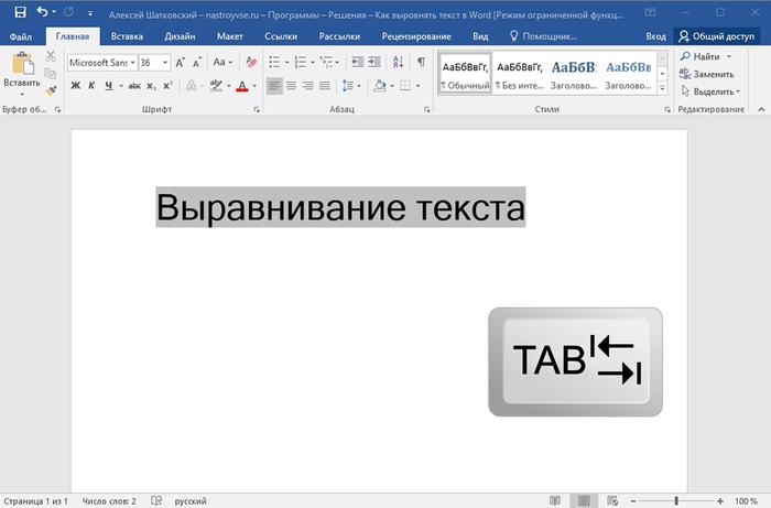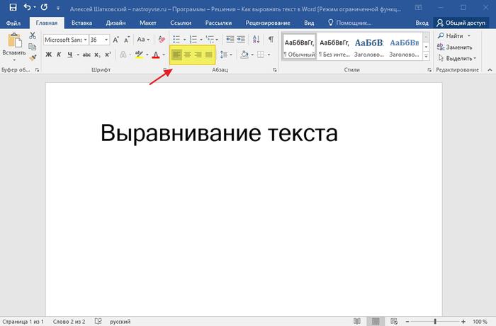 Выравнивание текста в Microsoft Word