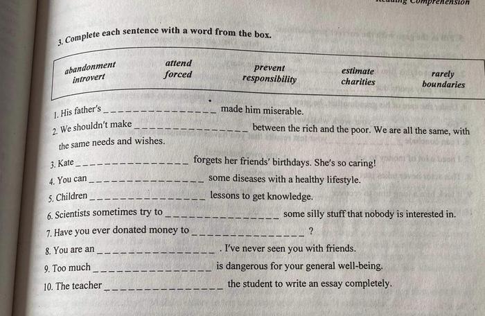 By incorporating the sentence completion activity into your language learning routine, you can sharpen your grammar skills and enhance your overall communication abilities. Remember to practice regularly, analyze sentence structures, and consider the context to select the most appropriate word. Happy learning!